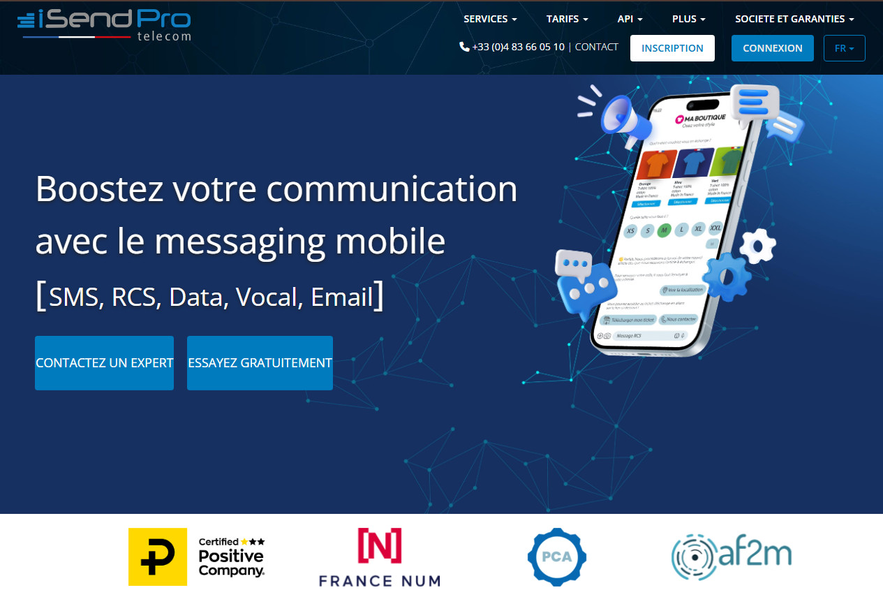iSendPro est une plateforme française spécialisée dans la communication digitale et mobile à destination des entreprises. Elle est exploitée par la société DIXDATA, créée en 2002 et basée en France. La solution est conçue comme un outil multicanal permettant aux professionnels de gérer leurs campagnes marketing et transactionnelles via différents supports (SMS, email, vocal, etc.).